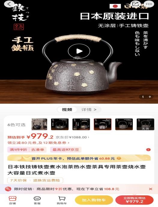 (2)铁技 铁壶(樱花)HK-325T原价1088元,京东价1088元。内购价格690元