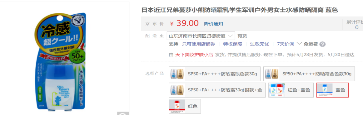(4)近江蔓莎小熊清爽防晒乳液 原价39元。市场价39.8元。内购价29元
