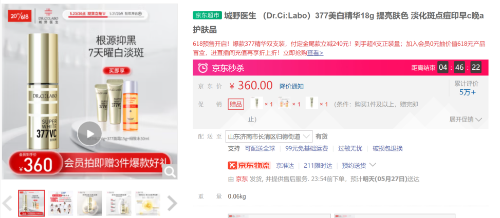 (10)城野医生淡斑精华18g原价330元.京东价360.内购价235元
