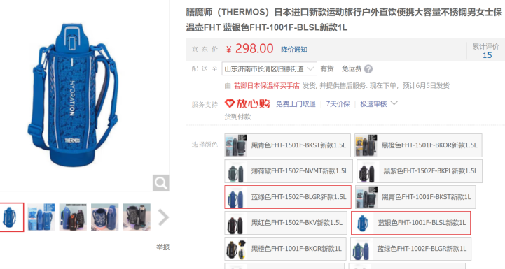 (5)膳魔师双层真空运动保温杯FHT-1501F 原价269元。京东价298元。内购价239元