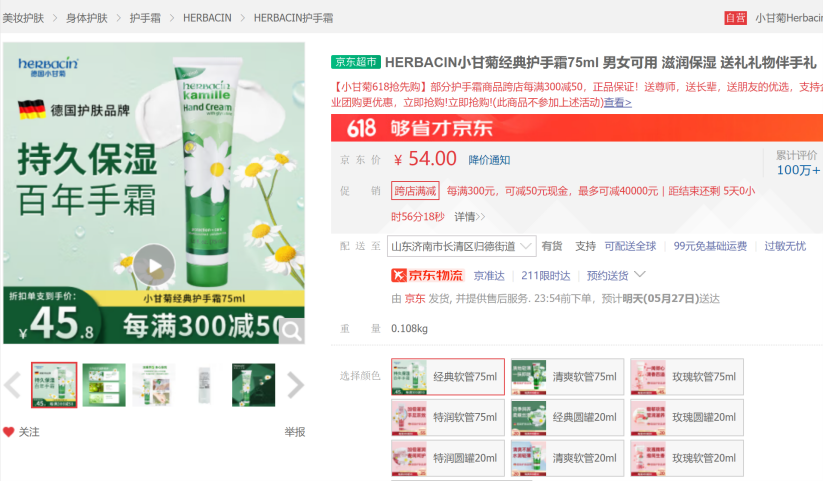 (6)小甘菊新经典护手霜75ml(中) 原价45.8元。京东价45.8元。内购价格39.9元