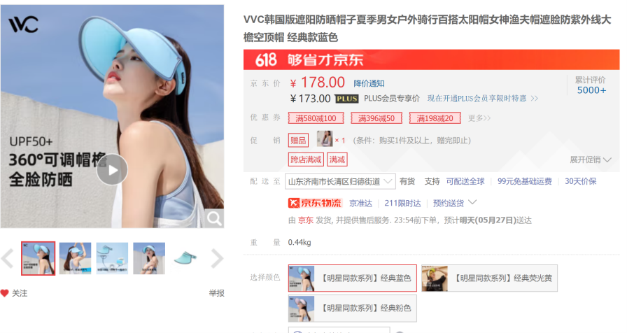 (9)VVC经典款防晒帽原价158元,京东价158元。内购价89元