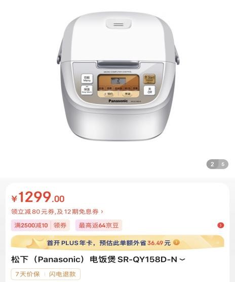 (1)松下电饭煲SR-QY156D-N原价1299元。京东价1299元。 内购价格499元