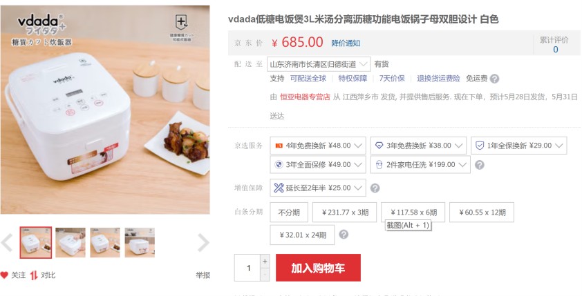 (8)vdada味达 降糖电饭煲 3L原价685元,京东价685元。活动价559元