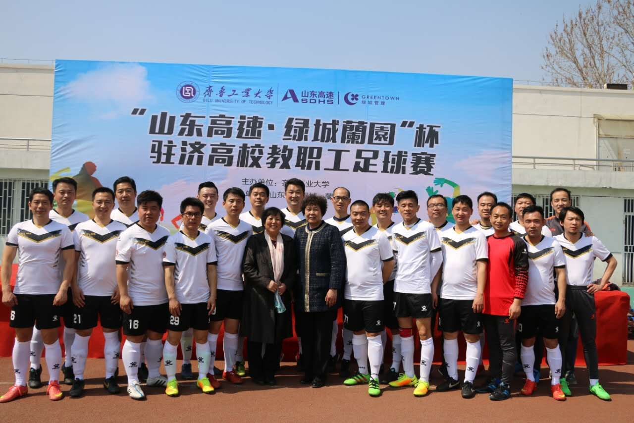 4月1 -15日,由山东高速地产集团、绿城管理集团承办的 “山东高速·绿城蘭园”杯驻济高校教职工足球赛在齐鲁工业大学举行。本次比赛共有驻济高校的8支球队参加,学校教工男子足球队应邀参加了比赛。在小组赛中,学校教工男子足球队表现了不俗的实力,以两胜一负的成绩晋级排名赛。随后,在季军争夺战中,学校教工男子足球队发挥更加出色,以3:1力克济南大学足球队,最终获得第三名的好成绩,并在微信投票中获得总票数第一名,荣获“最佳人气奖”。
