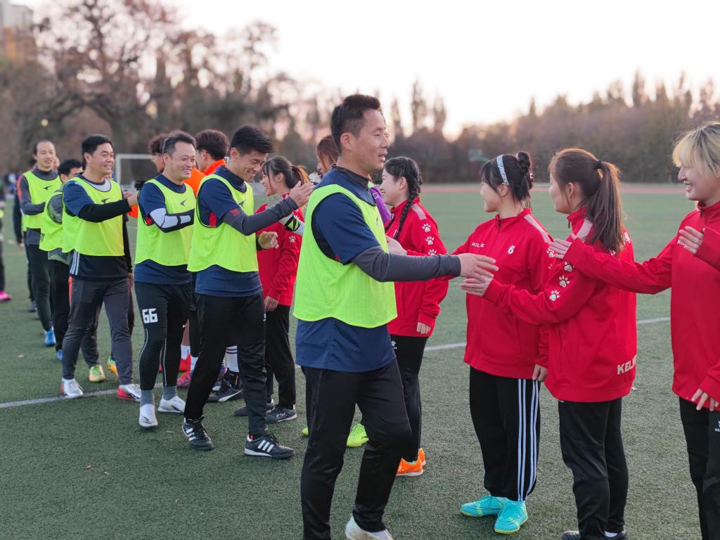 11月11日下午,由校工会、校团委主办,体育教学部承办的山东女子学院第二届体育文化节活动之“师生足球友谊赛”在足球场隆重举行。学校教职工足球队和学生男女足球联队在足球场进行了一场精彩的足球友谊赛。校工会主席于子云、副主席贾琰出席本次活动,于主席亲自为比赛开球。