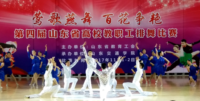 为践行党的十九大报告提出的广泛开展全民健身活动,满足教职工多元化、多层次的健身需求,提高广大教职工健身意识和体能素质,11月1日—2日,由山东省教育工会组织的第四届山东省高校教职工排舞比赛在山东交通学院体育馆举办。来自全省22所高校的300余名教职工参加了比赛。我校16名中青年教职工参赛,荣获“团体一等奖”和“优秀组织奖”,朱济光老师和田巍巍老师分别荣获“优秀教练员”“优秀运动员”称号。