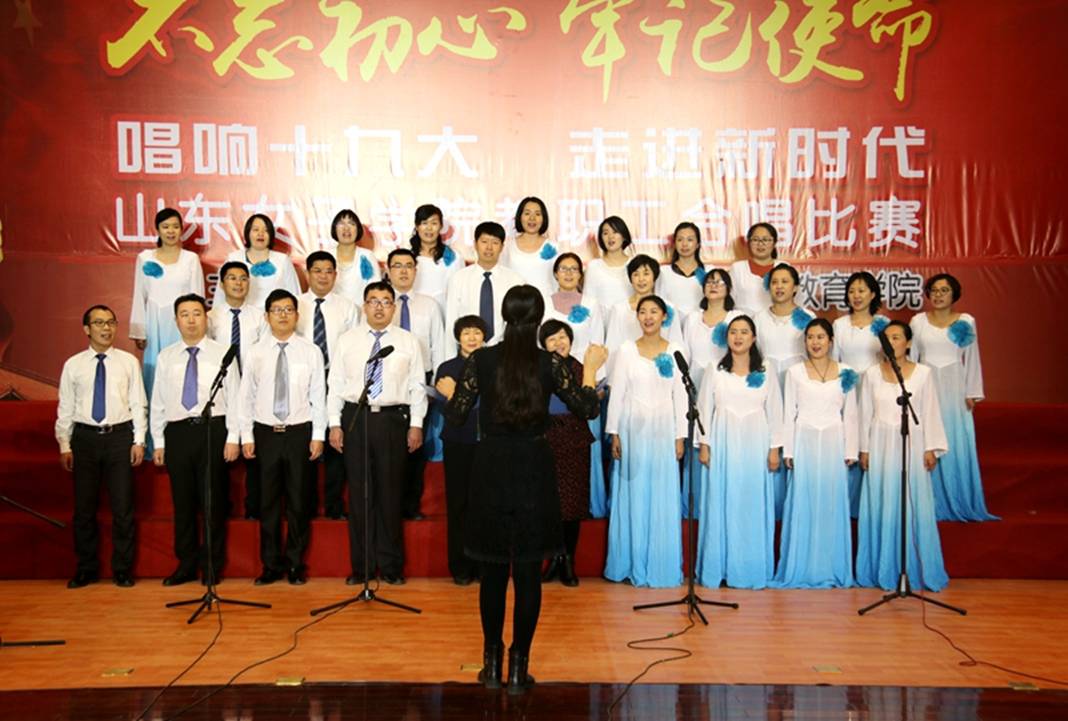 飞扬的歌声,回望激情的岁月;熟悉的旋律,展望美好的未来。12月28日下午,学校在图书馆二楼报告厅举行“不忘初心牢记使命,唱响十九大走进新时代”——山东女子学院教职工大合唱比赛。由15个分会组成的15个合唱队共计600余名教职工参加了比赛。学校领导郭翠芬、王淑霞、黄晓彦、侯素美参加了各自分会的演唱,并为获奖队颁奖。