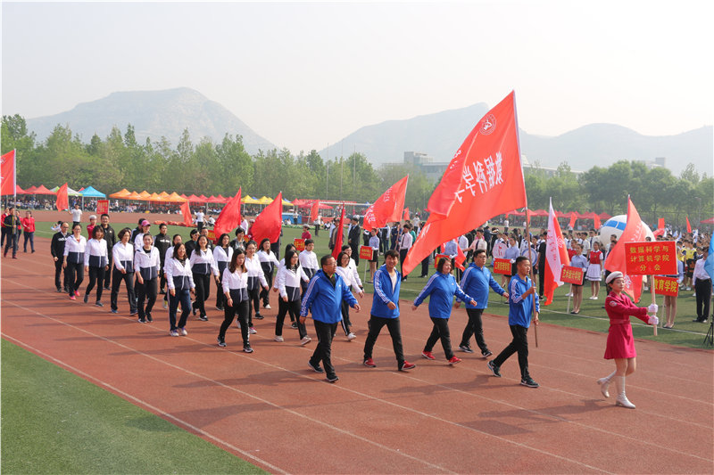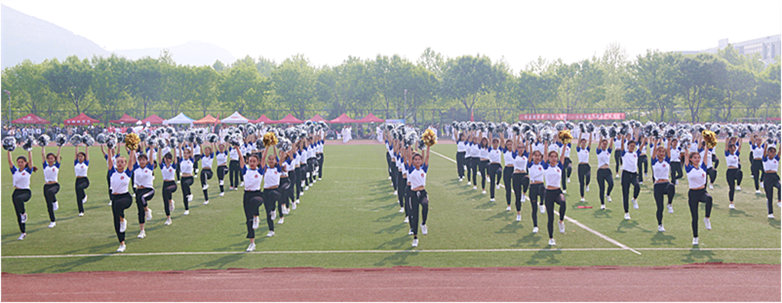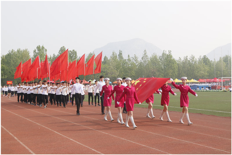 盛国军在致辞中指出,近年来,学校高度重视体育教学工作,积极推进体育教学改革,针对不同年级的同学开展不同的体育课程,基本建立起了基础、选项和选修三个层次的体育课程体系,为每一位同学发挥体育特长,掌握适合自己的健身技能奠定了良好基础。一直以来,学校大力倡导全民健身,积极开展阳光体育运动,群众性体育活动不断深入,尤其是通过组建特色运动队积极训练,既起到以点带面、点面结合、相互促进的作用,又使得同学们在各级各类比赛中屡获佳绩。2017年,学校健美操队在第六届全国全民健身操舞大赛全国总决赛中荣获特等奖3项、一等奖3项,获得“团队最佳创编奖”“优秀裁判员”“优秀教练员”等荣誉称号;学校健身气功队参加山东省高校健身气功比赛,获得大舞项目一等奖第一名,八段锦项目二等奖的好成绩。这些骄人成绩充分展示了我校师生的良好体质和精神风貌。盛国军强调,运动会是展示健与美的舞台,是和平与友谊的象征,希望全体参赛运动员,发扬“更高、更快、更强”的精神,充分发挥,赛出水平;同时也要服从大会安排,尊重裁判,尊重对手,赛出风格;希望全体裁判员,客观公正,严守规程,公正裁决。他指出,运动会是短暂的,但运动是永恒的,希望广大师生员工在运动会之后,常来运动场,把健身当做一种生活方式,用健康的身体支撑聪明的大脑,在新时代的伟大征程中,为追求美好生活打下良好基础。