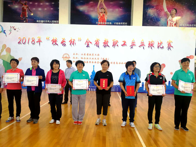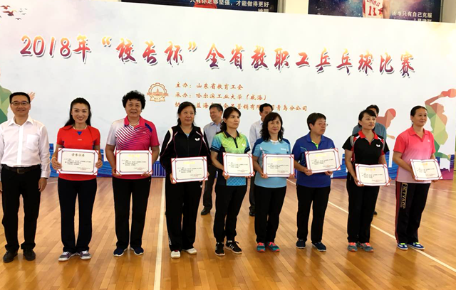 5月29日至6月1日,2018年“校长杯”全省高校教职工乒乓球比赛在哈尔滨工业大学威海校区球类综合馆举行。由盛国军、范素华、宿建沛等率领的山东女子学院代表队一行7人参加了比赛。经过激烈的角逐,学校在团体赛中获得突破,进入32强。范素华和宿建沛分获校级领导组女子单打第一名和第五名的好成绩,周玲莲获得工会干部女子组第七名,我校代表队荣获比赛优秀组织奖。