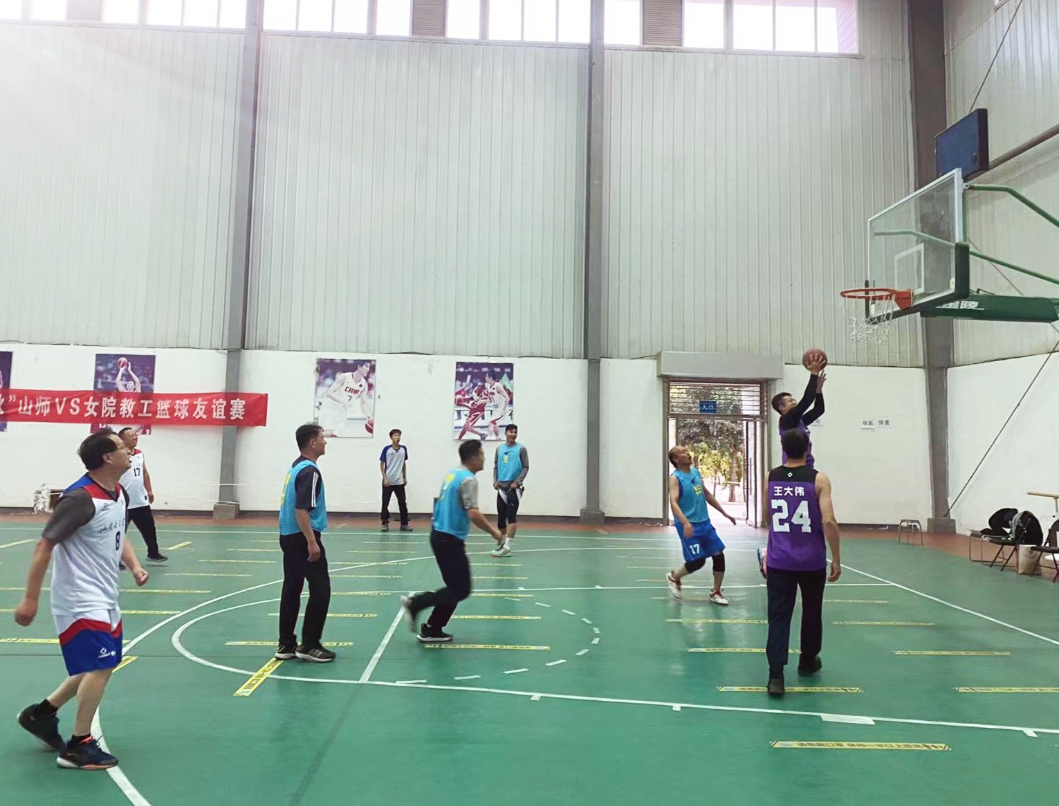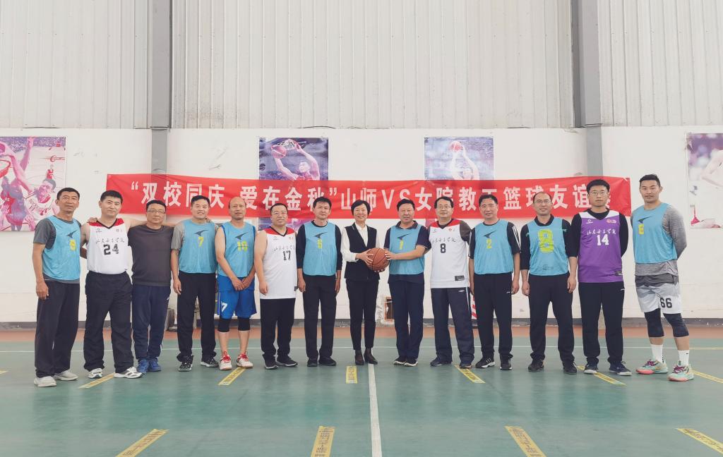 10月24日下午,学校与山东师范大学联合举办“双校同庆 爱在金秋”山师女院教工篮球友谊系列赛首场比赛开赛,比赛由学校工会组织,部分教职工参赛。