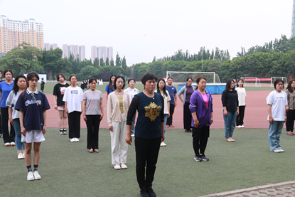 山东中医药大学护理学院教授于华荣在田径场为师生开展健身气功八段锦现场教学,并讲解了《黄帝内经》中医知识,通过细致讲解、标准示范、课堂互动等方式激发参与师生的学习热情。于华荣教授的精彩示范赢得了在场师生的阵阵掌声,现场气氛热烈。