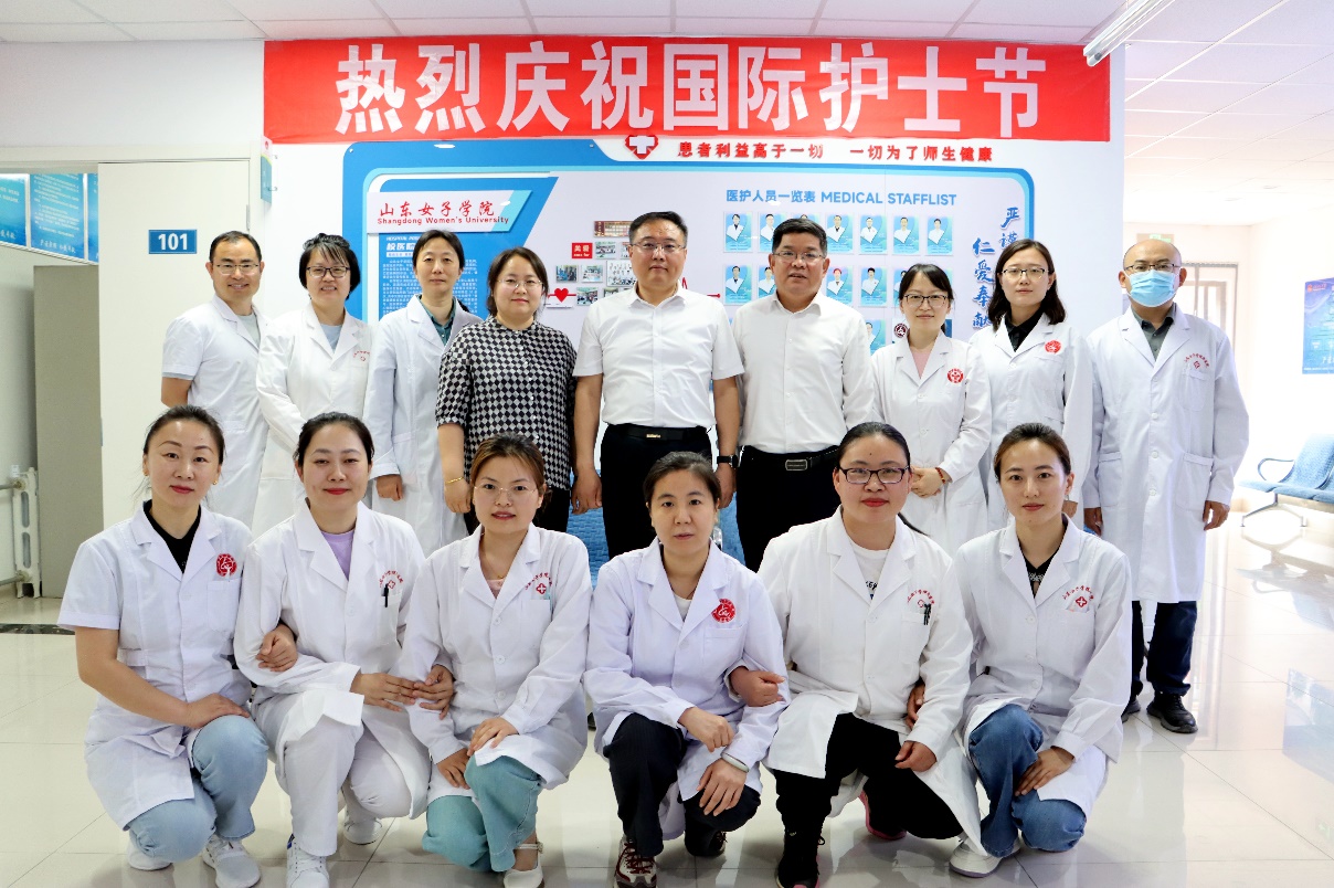 5月11日,在第113个国际护士节到来之际,校党委副书记龙希利在工会(妇委会)、后勤管理处(基建处)负责人的陪同下来到校医院,代表全校师生向全体医护人员送上节日的祝福和亲切的慰问。