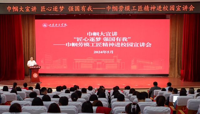 为深入学习宣传习近平新时代中国特色社会主义思想和党的二十大精神,大力弘扬劳模精神、劳动精神、工匠精神,5月16日,学校图书馆二楼报告厅举办“巾帼大宣讲 匠心逐梦 强国有我——巾帼劳模工匠精神进校园宣讲会”,本次活动也是落实全省教育系统“中国梦·劳动美”主题宣传教育活动的重要举措。山东省教育工会委员会主席王贞,学校党委书记吕晓黎,纪委书记、监察专员杨恩红,副校长田立新,长清区妇儿办副主席闵婷婷出席会议。山东省三八红旗手、北京理工大学前沿技术研究院常务副院长陈雪梅;全国五一劳动奖章、全国五一巾帼标兵获得者,济南市公安局槐荫分局营市街派出所社区民警、三级高级警长吴颖;济南市青联杰出成就奖、齐鲁乡村之星获得者,济南市草莓协会会长、山东佰瑞农业科技发展有限公司董事长杨馥羽;山东省三八红旗手、山东新润体育总经理刘旭担任宣讲嘉宾。学校副处级以上干部、党支部书记、思政课教师、辅导员、学生代表350余人参加宣讲会。会议由学校党委副书记龙希利主持。