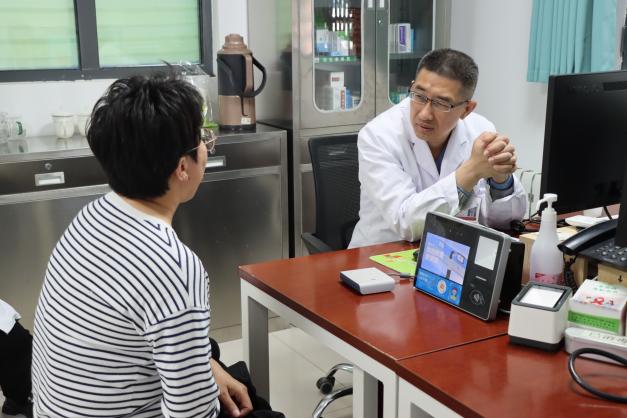 本次义诊活动邀请了山东中医药大学附属医院大学城医院心内科三位经验丰富、医术精湛的医生和专业的医护队伍,他们精心准备了血压测量、心电图检查、中医四诊及耳穴压豆等一系列免费体检服务。袁磊主任团队根据就诊教师的具体情况,给出科学的治疗方案,并对高血压用药方案进行了科学的调整与优化,确保治疗效果的最大化。郭磊医师强调,合理膳食、适量运动、戒烟戒酒等健康生活方式对预防和控制高血压有着重要作用,要定期体检以早期发现和治疗高血压。耳穴压豆吸引了众多教师的关注,在侯媛大夫的指导下,教师们亲身体验了这一简便易行的中医保健方法,感受到了中医文化的独特魅力与显著效果。此外,副主任医师袁磊还特别针对女性群体进行了健康宣教。田校长对山东中医药大学附属医院大学城医院的服务质量和技术水平给予了高度评价,并对医院长期以来对我校师生健康的关怀和支持表示衷心的感谢。