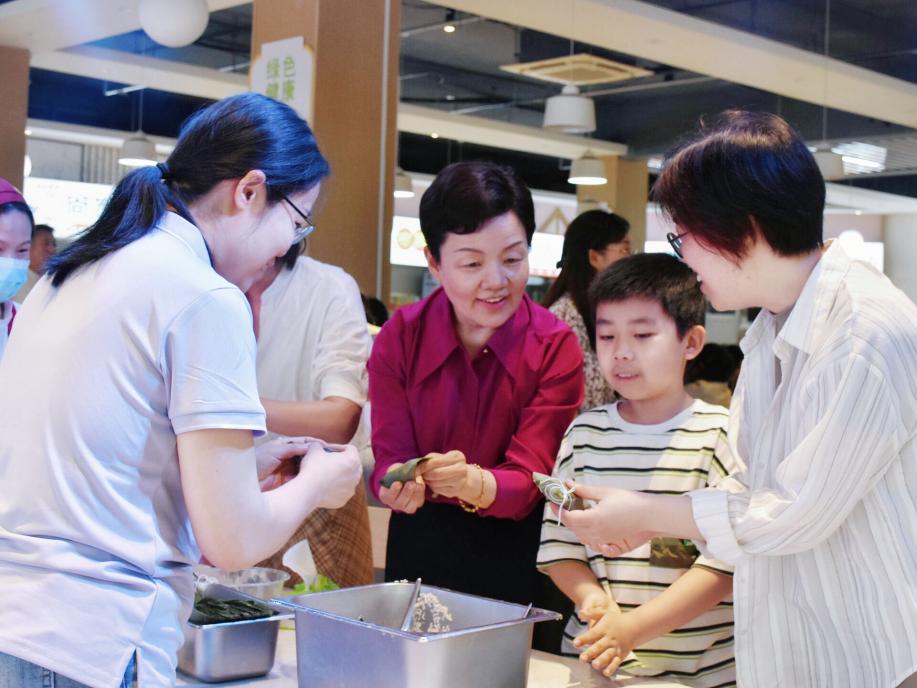 田立新和相关部门负责人为包粽子比赛获奖的小朋友颁发了奖品,并与师生共同分享活动成果。
