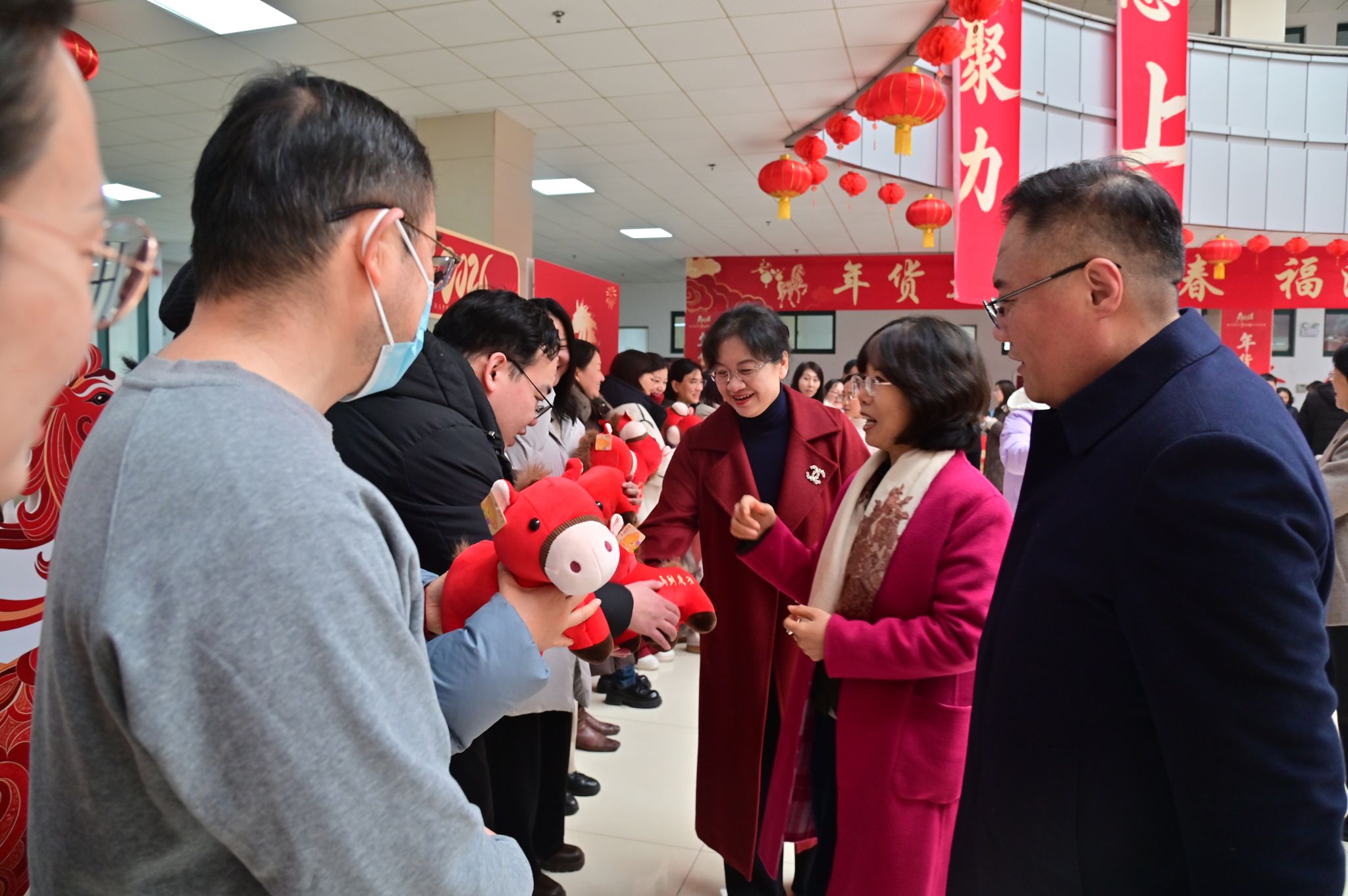 新春将至,岁寒情暖。为弘扬中华优秀传统文化,营造喜庆祥和的节日氛围,1月29日下午,由学校工会主办的“龙马精神启新程 诗书雅集迎新春”教职工游园活动在图书馆A座一楼大厅举行。现场张灯结彩、笑语满堂,校领导吕晓黎、李光红、龙希利、杨恩红、田立新与教职工们共同参加活动,共迎丙午马年新春。